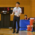 昨年から指揮を執る楠元コーチ。尽誠学園出身で渡邊雄太と同級生だ[写真]=佐々木啓次