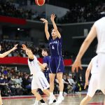 後半は、岐阜女子の藤田の3本のフリースローでスタート。34-36と逆転を許すも、江村がすぐさまやり返し、その後は一進一退の攻防となった。それでも同クォーター終了間際に平下が得たフリースローを2本しっかりと沈め、49-46で勝負は最後の10分間へ。