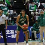また彼のディフェンスにも注目したい。鍛え上げられた脚力と、180センチという身長に対して190センチという長いウイングスパン(両手を横に開いたときの長さ。一般的には身長と同じくらいと言われている)は相手にとって脅威になる。いったんドリブルを止めたら最後、長い手でまとわりつかれ、簡単にはパスが出せなくなる。