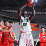 初戦は県立四日市工業高校(三重県)との対戦。出足から数分はやや硬さが見られたが、徐々にパスが回り始めると、広くスペースをとって3ポイントを狙う攻撃が次々に決まっていく。インサイドではダブルチームで囲まれてもキエキエ トピー アリ(3年)がゴール下を支配。3ポイントが好調だったガードの佐藤涼成(2年)は第1クォーターだけで3ポイント2本を含む18得点を挙げた。