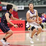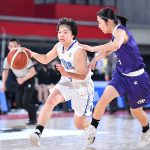 西原高校(沖縄県)は粘る米子南高校(島根県)を振り切り、103-90で勝利、2回戦進出。西原・知名梨里亜(2年)はさらに上を目指す。
