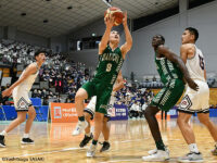 近年、その強力なチームディフェンスと、高速トランジションで全国を席巻してきた福岡第一。しかし6月6日に行われた福岡大学附属大濠高校との決勝戦では序盤からディフェンスで後手に回り、トランジションゲームにも持ち込めなかった。そこにはもちろん福大大濠の個々の能力の高さや、「福岡第一に走らせてなるものか」と素早く戻る、規律の取れたディフェンスがあったことは言うまでもない。留学生の高さに対しても、2年生センターの副島成翔(195センチ)と注目ルーキー・川島悠翔(199センチ)が勇敢に戦う姿があった。