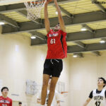 「中学の2年間はアメリカでバスケットをしていたのですが、コロナ(ウイルス)の影響で日本に帰ってきました」と話すアンソニーは、インサイドプレーに加えハンドリングやボールプッシュもそつなくこなし、3ポイントシュートも高確率で射抜く。得意なプレーを聞くと、「ドライブと3ポイントシュート、ディフェンス、リバウンド」と次々に答えが返ってきた。