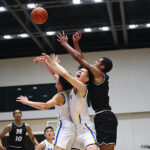 後半、帝京長岡がコネのインサイドでジリジリとリードを広げる。それでも仙台大明成は八重樫ショーン龍(2年)の3ポイントなどで追いつき、第3クォーターの終盤でもともに抜けきれない。