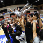 これまでも優勝に近づいたことは何度もあった。そこでの経験、悔しさを糧につかんだ優勝。表彰式後、記念撮影を終えると、3年生たちが常田コーチに声をかけた。留学生ら大きな選手たちが中心となる輪の中に入った常田コーチは、新潟の地で宙を舞った。