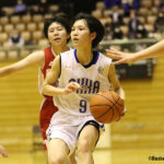 だが、第2クォーターに入ると桜花学園が朝比奈のインサイドプレーや横山智那美(2年)ドライブなどでじりじりと点差を広げていく。桜花学園は激しいディフェンスで安城学園の得点を11得点に封じ、前半は44-31と13点差をつけて終了した。