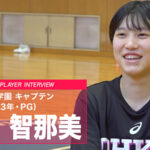 昨年から桜花学園のスターターを担うガードの横山智那美は、身体能力が高く、センスも抜群。ダブルクラッチからのシュートやパスもお手のものだ。キャプテンとして迎える今年は、強いリーダーシップを発揮しながら、チームをけん引している。