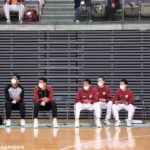 卒業後も高校の練習に参加。インターハイ予選では佐藤久夫コーチ(右)と高橋陽介アシスタントコーチ(左)とともに、スタッフとしてベンチ入り[写真]=小永吉陽子