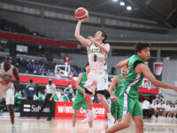 ティップオフ直後に主導権を握ったのは福岡第一だったが、中盤の粘り合いから終盤には川島悠翔のスリーポイントシュート、湧川颯斗の速攻で福大大濠は逆転に成功。19−18の1点差で第2クォーターに。