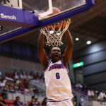 だが、追いつかれた美濃加茂も一歩も引かず。北條彪之介(3年)、エブナ フェイバー(2年)らで入れ返していく。そのまま試合は終盤までもつれたが、残り40秒で藤枝明誠が3点のリードを奪う。このまま藤枝明誠が逃げ切るかに思われたが、美濃加茂は残り29秒、後藤陽南(3年)が値千金の3ポイントシュートを沈めて、勝負は延長へともつれた。