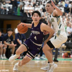 崎濱秀斗、山口瑛司(ともに3年生)という自慢の2ガードが故障のために万全なコンディションではなかった福岡第一。2人の出場時間を制限した中、他の選手の頑張りで初日を突破。迎えた別府溝部学園との準決勝ではロハンドジュラ オマニュド ジョン(2年)の高さと大庭涼太郎(3年)の積極的なシュートに手を焼く展開に。それでも46−41で迎えた後半、福岡第一は控えの高口陽季(3年)が攻防にわたり躍動する。高口はゾーンディフェンスの裏をついたポジショニングでゴール下のシュートを決めたかと思えば、速攻の先頭を切る走力を見せつけチームに勢いをもたらしていく。