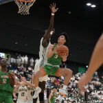 福岡第一はベンチ入りした15名がコートに立ち、チームのコンセプトである堅守速攻を体現。最終スコア107−72で勝利し、九州大会5連覇を達成した。