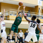 初戦となる2回戦から順調に勝ち上がった東山は、決勝戦で阪南大学高校(大阪府)と対戦。第1クォーターこそ22-18とわずか4点のリードで終えたが、第2クォーターに入ると佐藤凪(1年)の3ポイントシュートなどが適時に決まり、追い上げる阪南大学を引き離していく。リバウンドからシュートをねじ込む佐藤友(3年)にドライブから攻撃を仕掛ける瀬川琉久(2年)と、新チーム当初からチームをけん引してきた2人も果敢に攻め、前半は48ー33と15点リードで終えた。