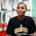 「チームが一つになって、ディフェンスとリバウンドを頑張りたいです。走ることも頑張りたくて、例えばリバウンドを取ったら、すぐにガードにパスをして、走るようにしています。(昨年は)はじめて優勝することができて、うれしかったので、今年もみんなで声を出して、優勝できるように頑張ります。