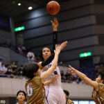 高さを生かした得点のみならず、速攻でも先頭を走って得点に絡む福王。年を重ねるごとに体の強さも備わってきており、初代女王となった「U18日清食品トップリーグ2022(女子)」では、インターハイ覇者・京都精華学園高校(京都府)との試合で、相手センターのイゾジェ ウチェ(現シャンソン化粧品シャンソンVマジック)とディマロ ジェシカ(3年)に対して体を張ったディフェンスで奮闘。2人に容易に得点を与えず、チームの勝利に一役勝った。