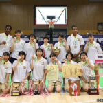 堀内桜花は隣同士で座っていた八木悠香と両手でハイタッチを交わすと、そこにディマロ ジェシカ(いずれも3年)が駆け寄ってきた。中学時代から6年間一緒にプレーしている3人は、今や京都精華学園が誇る3本柱だ。決勝戦でも八木が20得点、ジェシカは20得点18リバウンドの活躍を見せた。