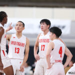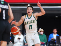 危なげない試合運びで3回戦を突破した福岡第一は、崎濱秀斗が31分のプレータイムで5本の3ポイントを含む35得点3リバウンド7アシスト2スティールをマーク。インサイドで奮闘した世戸陸翔が18得点15リバウンド、サー シェッハも14得点10リバウンドでダブルダブルを記録した。