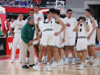 1年生ながらロスター入りした今大会注目の“ツインズ”は、今大会準決勝までの4試合で出場時間5分5秒、無得点だったものの、この日は31点リードで迎えた第4クォーター残り1分23秒に井手口孝コーチから「アタックしてこい」と背中を押され、2人揃ってコートイン。早々に背番号33の聡がファウルを受けてフリースロー2本をきっちり決めると、「ベンチから『耀も決めてこい!」と言われていたので、決めたいという気持ちがありました」という背番号35の耀も、試合時間残り11秒でフリースローを獲得。1本目はリングに嫌われたが、2本目を決めて初得点を飾った。