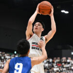 東山は瀬川琉久が立て続けに3ポイントを決めるなど、試合開始4分で12-0のランを見せる上々の立ち上がり。第1クォーター終盤から第2クォーターにかけて報徳学園の猛攻を受け、一時は最大12点差を逆転される場面もあったが、瀬川に続くように佐藤凪も要所で加点。第3クォーターにはルーキーの中村颯斗も絡む5連続得点で突き放し、最終第4クォーターも粘る報徳学園の反撃を振りきった。