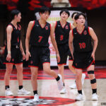 左上は、第1シードの京都精華学園高校(京都府)がベスト4入りの最有力候補。同校はウインターカップ3連覇と、昨年に続いてインターハイ、U18日清食品トップリーグとの年内3冠がかかる。キャプテンの林咲良を筆頭に橋本芽依、桃井優のガードトリオが軸となり、インサイドでは191センチのユサフ ボランレ アイシャット(いずれも3年)が君臨。試合の中で一時はペースを乱すことがあっても、最終的には勝ちきる勝負強さを武器に快挙達成なるか。