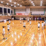 篠山・橋本に加え現役Bリーグコーチ6名が指導にあたり、1日目は実戦的なドリル、2日目はビデオセッションでのフィードバックを経て練習へ展開するというプロが実践するプログラムをそのまま中学生に提供した。