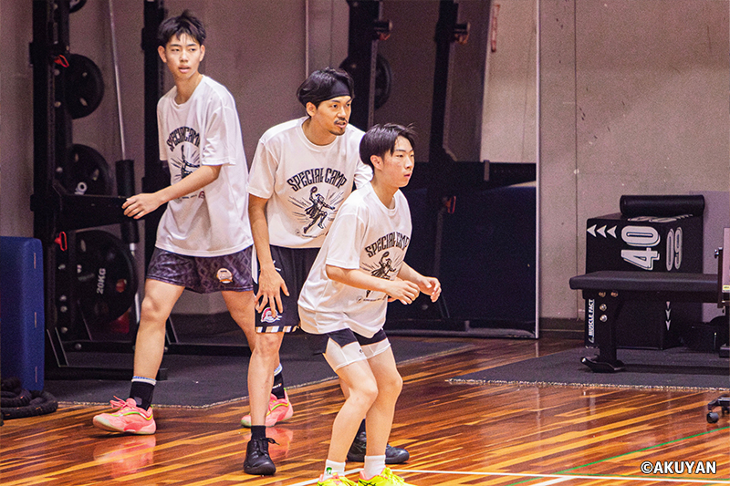 指導にあたった川原侑大氏(名古屋ダイヤモンドドルフィンズ・アシスタントコーチ)は「どういうオリジナリティを持った選手になりたいかを強く思い描いて、そこに対して少しずつ積み重ねしていってもらいたい」と、学生のうちから具体的な目標を持つことの価値を説く。また大森勇氏(トライフープ岡山 GM兼ヘッドコーチ)も「毎日の練習が勝負。その積み重ねがプロ選手への道だったりに絶対繋がる」とプロと同様の練習サイクルを知り、当たり前のものとして繰り返していけることが、この先の道に大きく関わってくると訴えた。