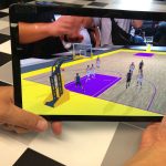 卓上で3D映像の試合を再現。ARグラスをかけると、試合の様子がどんなアングルからでも立体的に見える3Dホログラムで浮かび上がる。