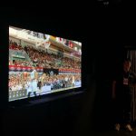 最新鋭HDR映像技術「DOLBY VISON(ドルビービジョン)」と立体音響技術「DOLBY ATMOS(ドルビーアトモス)」の融合によって、まるで目の前で試合を観ているようなライブ感溢れる視聴体験が可能に。TVモニターは従来の40倍以上の輝度を表現でき、スピーカーは天井や後方にもを設置されていた。