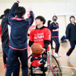 関谷悠介コーチ(川崎ブレイブサンダースプレーヤーディベロップメントコーチ/株式会社エルトラック)の進行で行われた体験会はクラスごとに分かれ、選手とともにバスケットボールを楽しんだ。体験会の最後はクラス対抗のシュート対決。クラスメートが一致団結し、卒業を控えた彼らは思い出のひと時を過ごした。