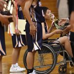 何よりも痛かったのは、試合開始早々にチームの大黒柱である喜多玄輝が負傷退場してしまったことだ。決勝戦のあとに行われた表彰式では車いすに乗って参加するほどの大きなケガである。前日にも得点力のある東拓志がケガをしていて、準決勝には出られない状態。喜多のケガは「選手たちも焦ったと思いますが、それ以上に僕がパニクってしまいました。コーチとしての経験不足です。選手たちには悪いことをしてしまいました」と、奥田コーチは振り返る。