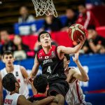 2日のグループリーグ初戦では、同じ相手に94-68で快勝した日本。第1クォーターは富永啓生(桜丘高校)のフリースローで先制すると、中村拓人(中部大学第一高校)が連続得点をマークして先行する。残り2分15秒に14-15とされたが、岩崎光瑠(近畿大学附属高校)、江原信太朗(実践学園高校)が返して3点リードで終えた。