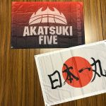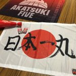 “AKATSUKI FIVE”のロゴと“日の丸”の2種類のフラッグが登場! “日の丸”には篠山竜青(川崎ブレイブサンダース)が書いた「日本一丸」のメッセージがプリントされている。