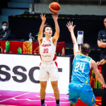 日本は渡邊が得点とアシストでチームをけん引するなか、張本天傑(名古屋ダイヤモンドドルフィンズ)も3点プレーを成功させるなどしてカザフスタンを追走。しかし追いつくまでには至らず、45-48と3点ビハインドでハーフタイムへ。個人に注目すると、前半終了時点で渡邊が17得点、河村はわずか5分の出場で5アシストを記録した。