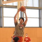 今回の代表合宿では、育成強化選手の招集やディベロップメントキャンプ参加メンバーの“昇格”など、“新顔”が増えた。吉井と同ポジションの若手である金近廉(東海大学)にもスポットライトが当てられるなか、「あの身長から繰り出される素早い動きや柔らかいシュート、アジリティが本当にすごいと思いますし、先輩たちの中でも物怖じせず、練習からシュートやドライブを積極的に狙っていて、僕自身も負けていられないなと思います」と冷静に分析し、敬意を払いつつもモチベーションになっていることを話した。