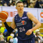 出場はなかったものの東京オリンピックのメンバーにも選出された日本人ビッグマン。琉球に加入した2021−22シーズン前に右ヒジを骨折し、長いリハビリを経て今月5日の富山戦で、プロデビューを果たした。