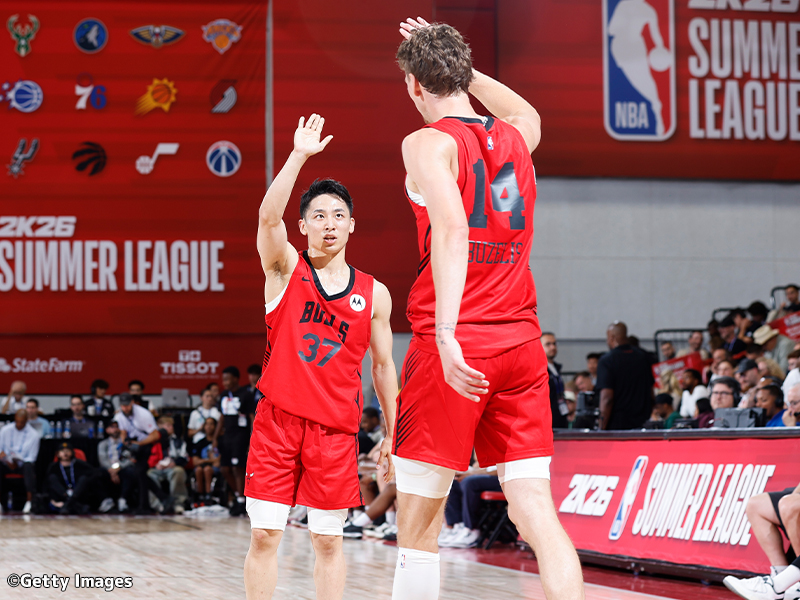 シカゴ・ブルズで「NBA 2K26 SUMMER LEAGUE 2025」を戦う河村勇輝。メンフィス・グリズリーズ時代と同様、その人柄はすでにブルズでも広くから受け入れられている様子で、コート外では連日、SNSなどを通してチームメイトと仲睦まじく過ごす姿が投稿されている。