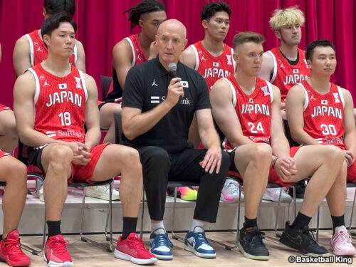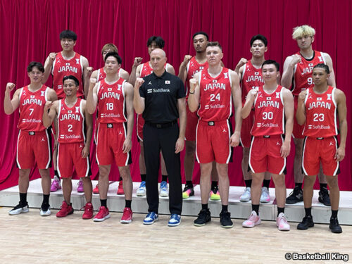 会見には、NBAサマーリーグを終えて合流した馬場、富永啓生(レバンガ北海道)、追加招集された富樫勇樹(千葉ジェッツ)が出席。8月5日にサウジアラビア・ジッダで開幕する本大会に向け、チームの体制が整った。