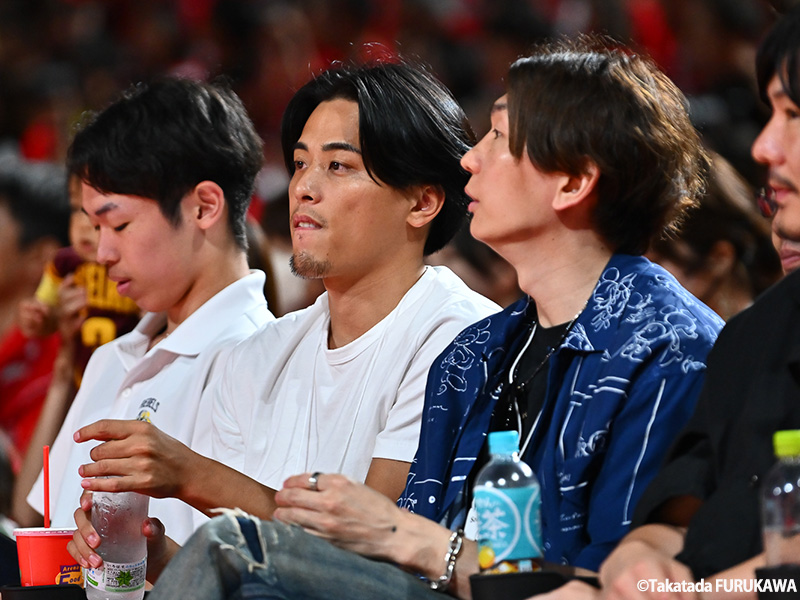 千葉Jのチームメートの西村と代表戦を観戦 [写真]=古川剛伊
