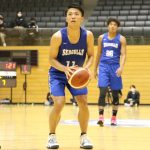第2クォーター、東海大は坂本聖芽(3年)、河村勇輝(1年)らを中心に試合を展開すると、坂本が会場の度肝を抜くダブルクラッチを沈めて起用に応える。対する大東文化大はバトゥマニ・クリバリ(1年)の得点でついていったが、同クォーター残り2分19秒、河村に3ポイントを決められ36-22。すぐさまタイムアウトを取って流れを止めるも、このタイムアウト明けからは東海大がさらに守備の強度を上げて襲いかかり、40-25で前半が終了した。
