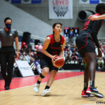 第2クォーターは宮澤とオコエのファウルがかさむ富士通に対し、シラがインサイドを攻め込んで1人で8得点をマーク。終盤には山本、三好の3ポイント、河村美幸の得点もあり、29-43でハーフタイムに突入した。