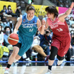試合はフレッシュWESTが岡田のシュートで先制点を奪うと、対するフレッシュEASTは三田の3ポイントで初得点。さらに、三田は2本目の長距離砲を沈め、フレッシュEASTがリードを広げる。それでも、高橋未来(デンソーアイリス)が前半終了間際に3ポイントを沈め、フレッシュWESTが11-18と点差を詰めて試合を折り返した。