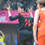 試合開始早々に3ポイントを決めた栗原[写真]=Wリーグ