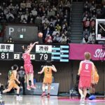33-43で迎えた後半は、リードするチーム渋谷のカーリングパフォーマンスでスタート。しかし、三好のために勝利を貪欲に目指したチーム原宿が徐々に点差を詰め、一進一退の展開に。第3クォーター終了間際に飛び出した本川紗奈生(デンソーアイリス)のレイアップが、あるはずのないリプレー検証を要求したチーム渋谷の猛アピールも実らずカウントされ、58-58の同点で第4クォーターに突入する。