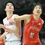 続く第2クォーター、序盤から本川紗奈生、赤穂ひまわり、馬瓜の得点でデンソーが徐々に点差を詰める。林や宮澤に長距離砲を決められるも、富士通の得点をスローダウンさせると、クォーター終盤で髙田も連続得点を挙げ、33-37で試合を折り返した。