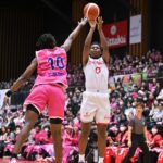 ただ、中盤以降はシャンソン化粧品が反撃。イゾジェウチェが1人で9得点を挙げれば、終了間際に吉田舞衣が逆転の3ポイントシュートを沈め、38-35で試合を折り返した。