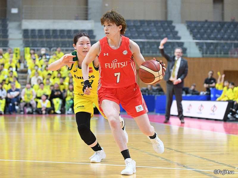 この試合で光ったのは、富士通のディフェンス力。BTテーブスヘッドコーチが「出だしから最後まで簡単に得点を許さなかった」と語ったように、相手の得点を抑え、インサイドの守備を徹底。試合を通して相手の2P成功率を29.7パーセントに抑え、リバウンドでも53-33と圧倒。個人では、町田瑠唯が19得点14リバウンド10アシストのトリプルダブルを記録し、攻守にわたってチームをけん引した。