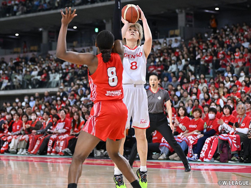 優勝にあと1勝と迫ったデンソーは、髙田が24得点6リバウンド、馬瓜が11得点11リバウンドのダブルダブルでチームをけん引。ともに先発を務めた川井や赤穂ひまわりも攻防両面で貢献し、勝利をたぐり寄せた一因となった。