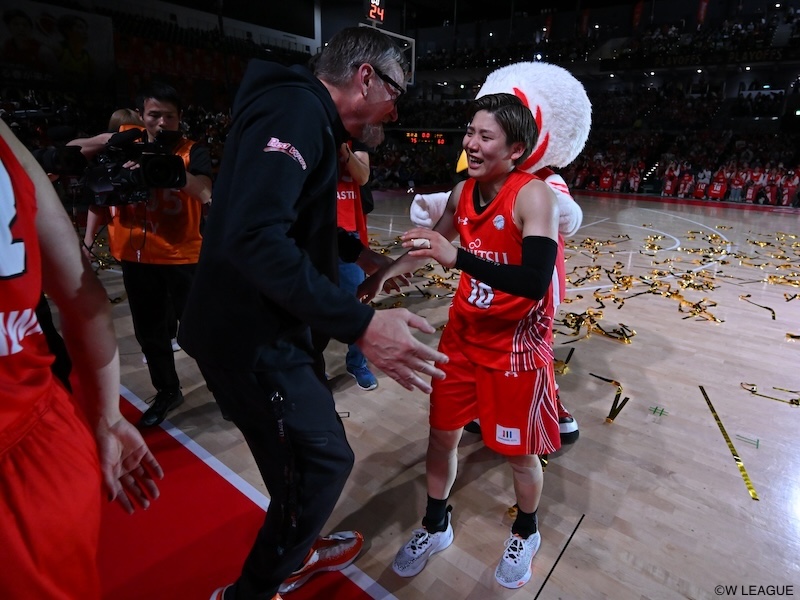 日本代表ポイントガードは「BTのラストシーズン。いつも練習が終わる度に少しだけ寂しそうな顔してましたね? その雰囲気を感じる度に絶対優勝して最高の笑顔で終わるんだ! って気持ちで練習してました。でも、優勝したあと、BTが泣いてるから…そりゃ、もー、、、!でも、最後に最高の笑顔で終われてよかった」とつづり、自身のMVP受賞についても触れた。