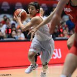 第3クォーターに入ると、ルース・ハンブリンに198センチの体躯を活かしたポストプレーから連続得点を奪われて差を詰められると、ファーストブレイクも許して一気に逆転される苦しい展開に。高さで上回る相手に対し思うような攻撃を仕掛けられない日本だったが、この試合で再三に渡りカナダを苦しめた本橋の左からのドライブや、キャプテン髙田の得点で再度逆転すると、馬瓜エブリン(トヨタ自動車)やオコエ桃仁花(デンソー)などの若いメンバーの思いきりのいいディフェンスや、根本葉瑠乃(三菱電機コアラーズ)のロング3ポイントなども決まり、55-46とリードしてこの10分間を終えた。