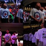 ティップオフの約1時間30分前、17時45分、子どもたちが緊張しながらもワクワクした表情で控え室に到着。担当者からオリジナルTシャツとハーフパンツが進呈され、ハイタッチのやり方や流れの説明を受けると、空き時間には談笑する様子も垣間見えた。